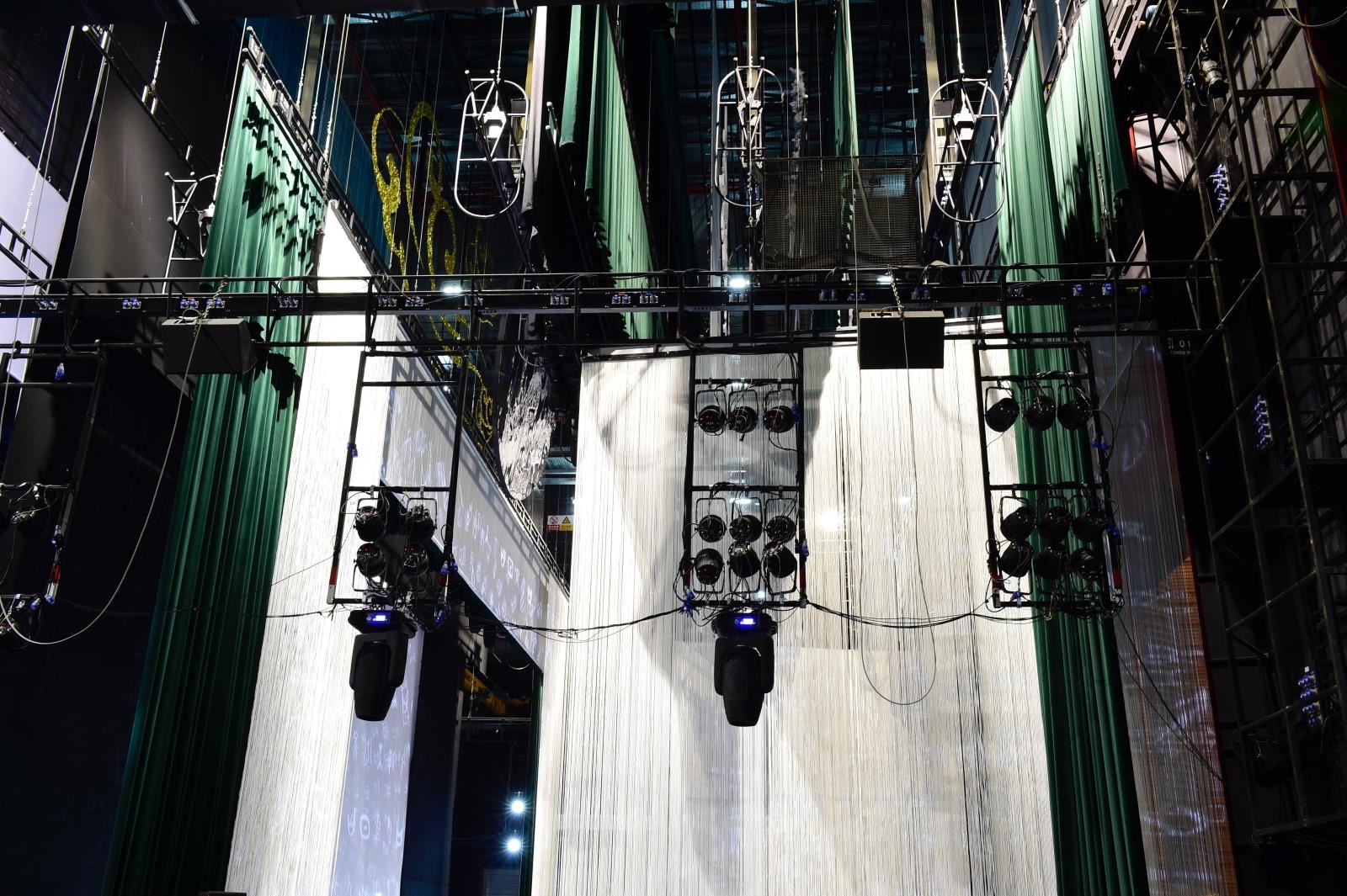 燈光吊架上配置用于燈光電纜收納的收線筐。注:燈光線槽、電纜、插頭、接線箱由燈光設備廠家完成。